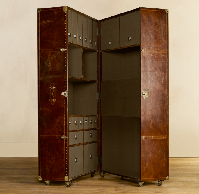 Crafted by antiques dealer and furniture maker timothy oulton of london, our oversized steamer trunk armoire is configured as an ingeniously designed secretary.